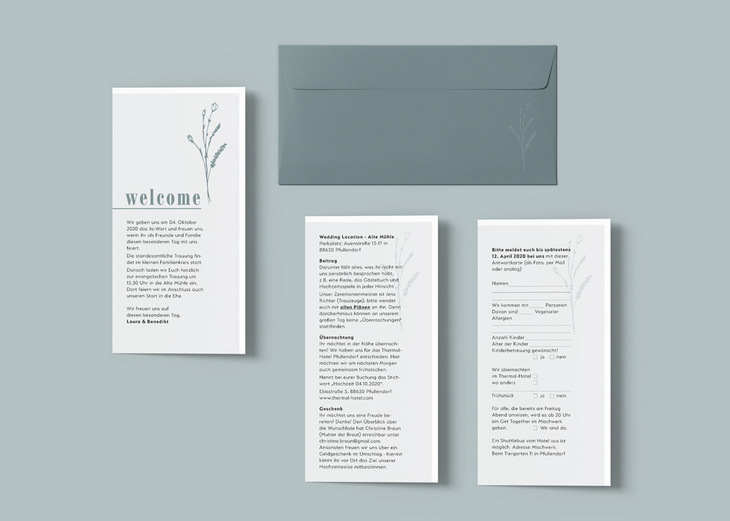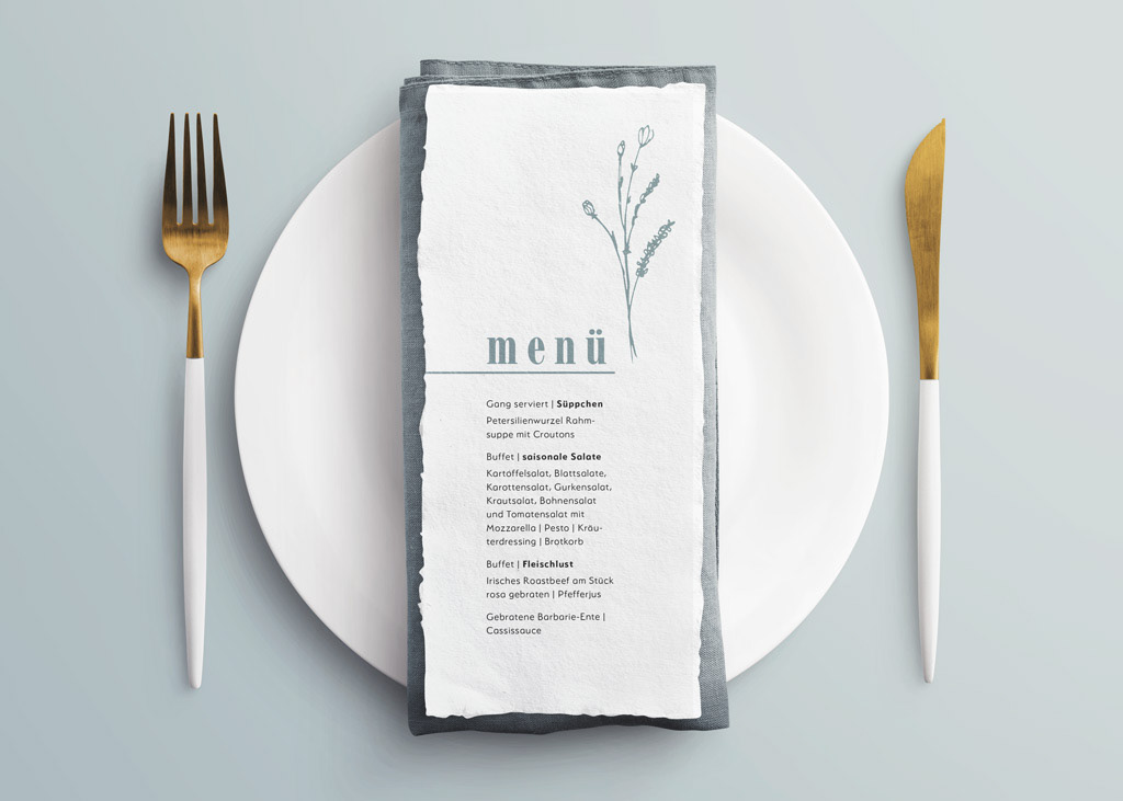 Für die Hochzeit ein Farbkonzept und Design entwickeln.